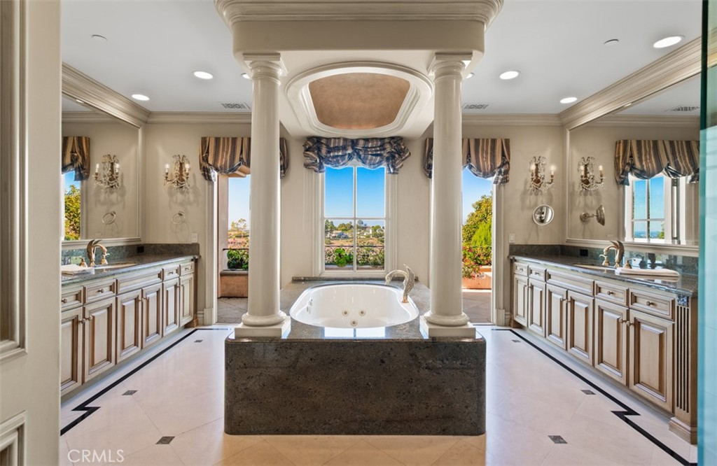 Outdoors, the flat, usable lot sets this property apart within Pelican Hill. Resort-inspired amenities include a pool and spa, BBQ pavilion, multiple covered loggias, curated gardens, and generous lounging and dining terraces--all oriented toward the ocean, harbor, and city skyline.