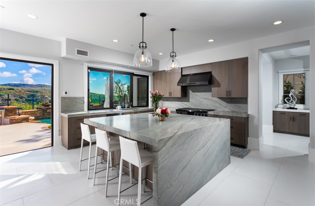 Ideally situated at the end of a tranquil cul-de-sac street, 12 Clearview is one of the few examples of a newly renovated home in Pelican Ridge Estates. Boasting approx. 4300sqft of transitional living space, every corner of this estate has been remodeled. Upon entry, an 18 foot tall grand foyer welcomes guest with a level of grandeur expected in a custom Pelican home. Multiple sets of Bi-folding doors & windows create an open concept floor plan, seamlessly blending the indoor and outdoor spaces. The interior is highlighted by designer finishes such as custom milled cabinetry, Limestone and wood flooring, leathered quartzite countertops, and chef grade Dacor Appliances. Upstairs, the generously appointed master suite, complete with its own retreat, overlooks the rolling hillsides and glistening waters of the Pacific Ocean as its very own private backdrop. The spa-like master bathroom is complete with an oversized shower, spa tub, and a spacious walk-in closet. Three oversized secondary bedrooms, with custom milled closets, recessed LED lighting, and designer accent walls, provide accommodations throughout the upstairs, while a main floor bedroom allows for an ideal suite for in-laws or guests. The entertainer's dream backyard is complete with salt water pool & spa with a Baja edge, expansive BBQ island, and covered outdoor seating, creating a resort like ambiance that rivals the best hotels across the globe. Immediate proximity to world class schools, local Dining + Shopping, and the unlimited beaches along the coastline, complete this move-in ready estate.