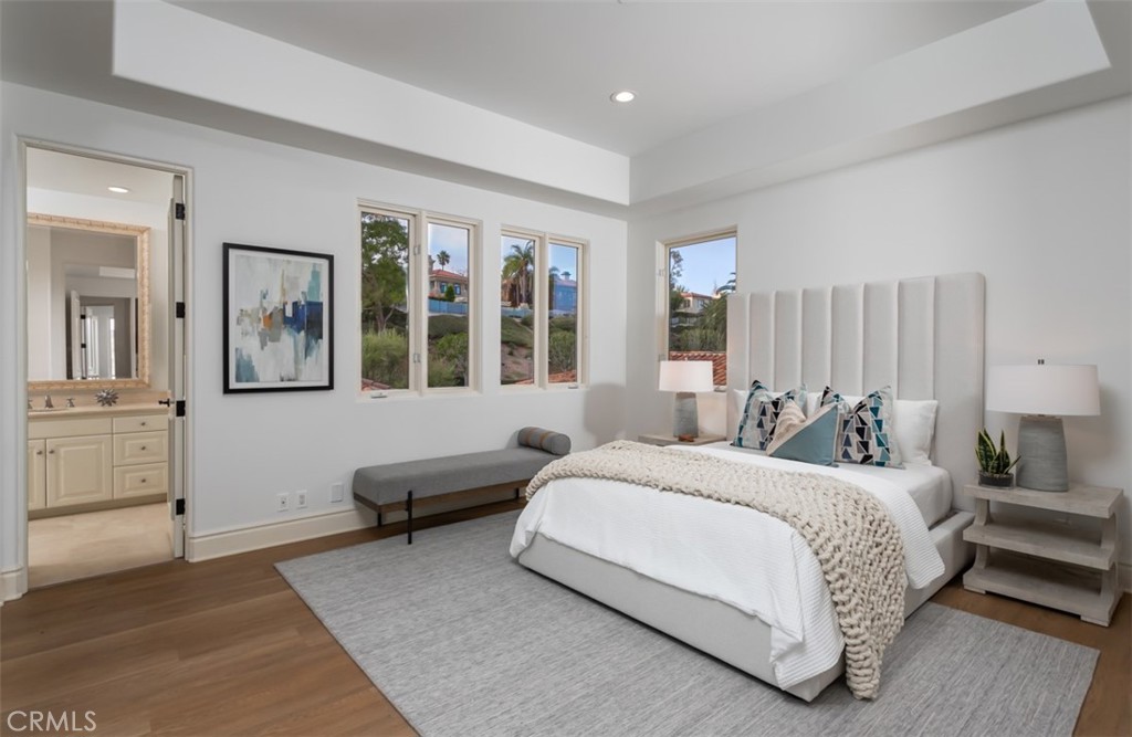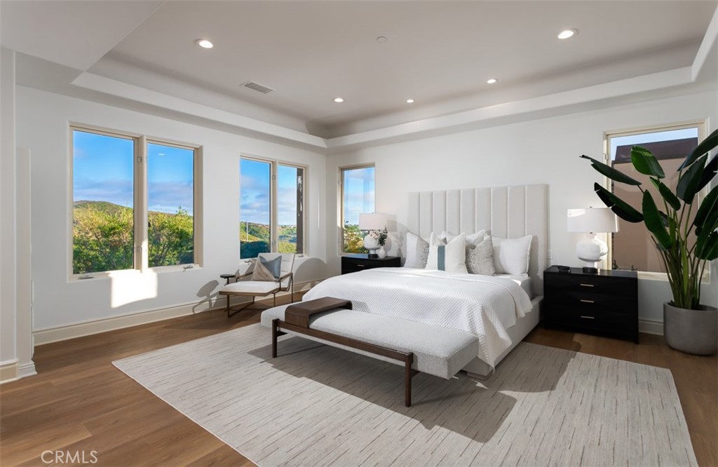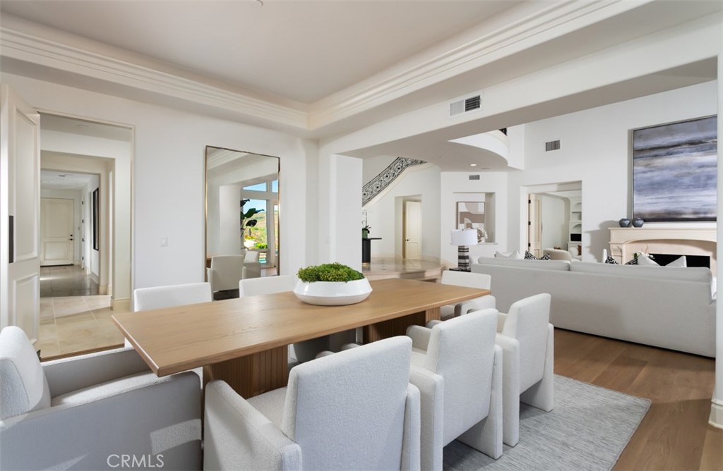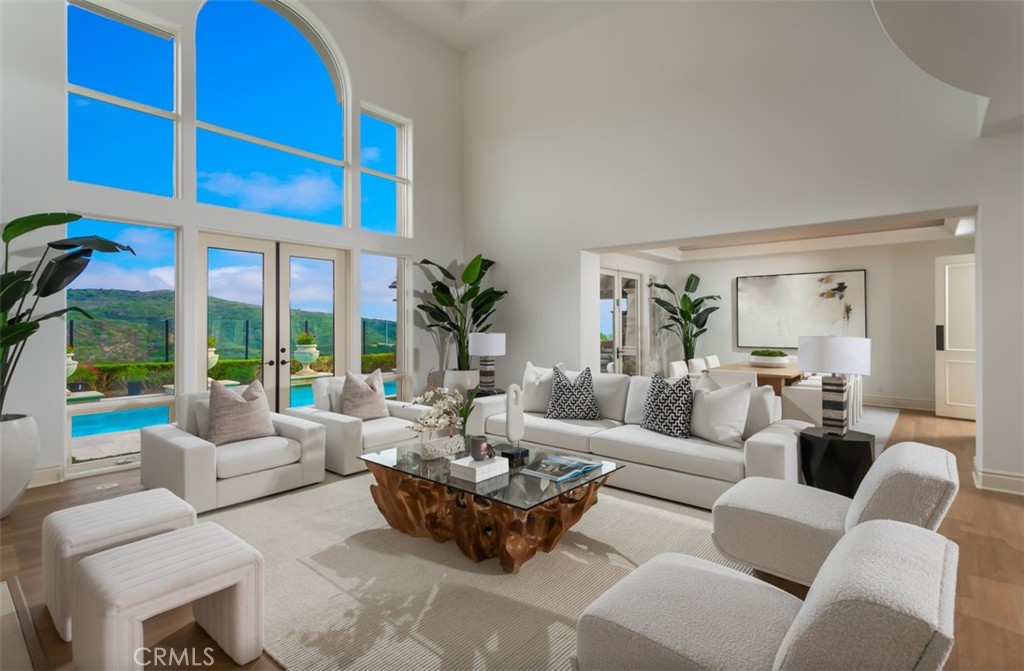 Ideally positioned to maximize privacy and curb appeal on a single loaded, Cul de sac street in the exclusive guard gated community of Pelican Ridge. 12 Morning View has been newly reimagined and remodeled to offer awe-inspiring street presence & expansive views of rolling hills & partial ocean views, that set the stage for the grand entrance. Upon entry, a gated motor-court showcasing a four car garage, lead you to the impressive front door where a a double height foyer greets you with grandeur and poise. While an abundance of windows deliver natural light to every corner of this voluminous entrance. Over 5,900 sqft of recently updated living space highlighted by French Oak Floors, new kitchen countertops, and designer lighting fixtures, provide ample space for large scale celebrations while maintaining practicality for everyday living. The kitchen, complete with chef grade appliances, wine refrigerator, and refreshed cabinetry, blends seamlessly together with the family room, creating an open floor plan ideal for everyday living and large scale events. Four oversized en-suite bedrooms, including one on the main level, provide a level of accommodation rivaling the Pelican Hill Resort just down the road, while a bonus room and main floor private office supplements their function. The generously appointed master suite includes a retreat area, spa sized bathroom, and walk-in closet rivaling a showroom at South Coast Plaza. The resort style backyard, meticulously designed by a French landscape architect, combines a picturesque pool/spa, covered patio w/ fireplace, and outdoor BBQ area & loggia, to create the ideal setting for true California living. This private oasis is framed by a backdrop of rolling hills and a blue waters of the Pacific Ocean. Immediate proximity to world class schools, Fashion Island, and the coastline beaches, complete this Pelican Ridge dream home.