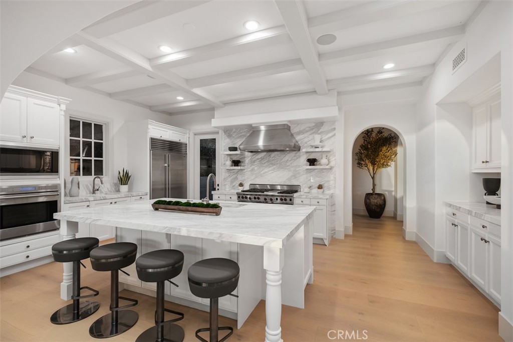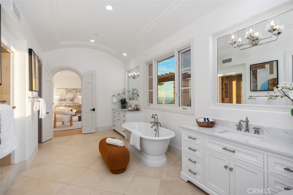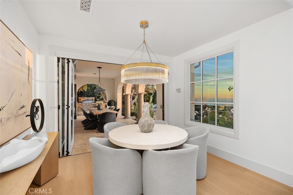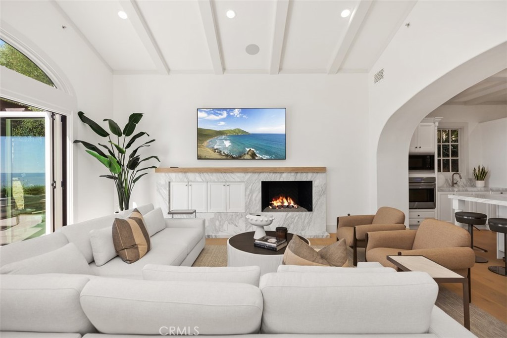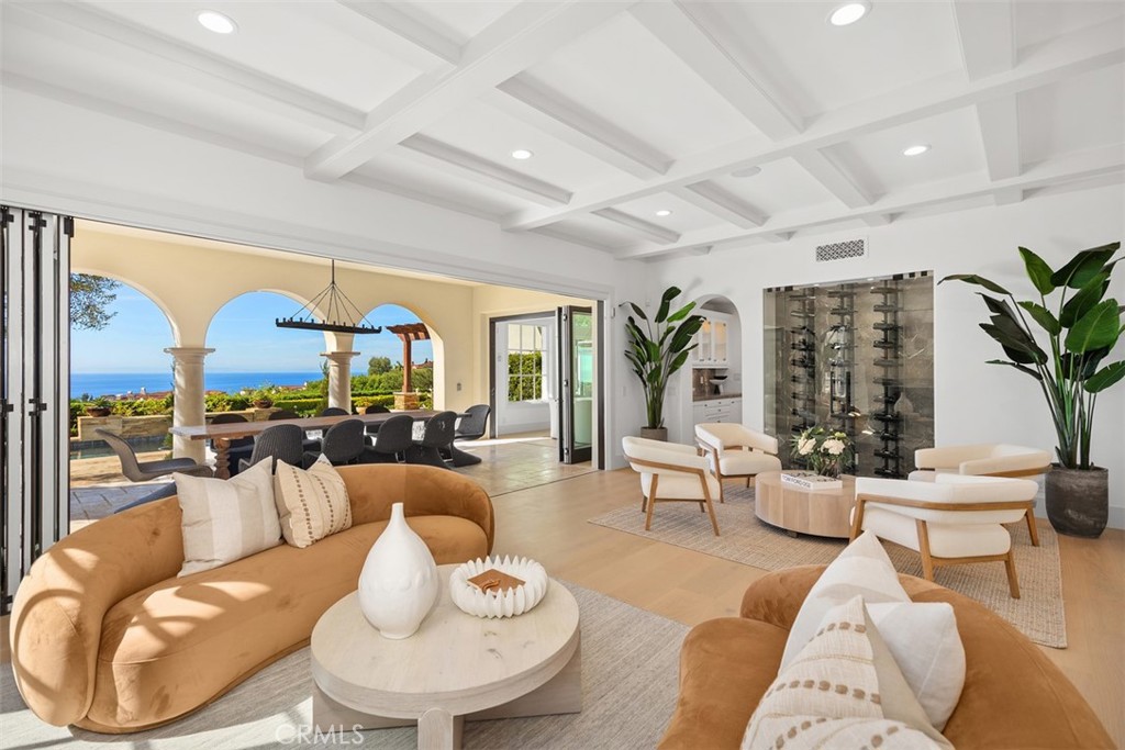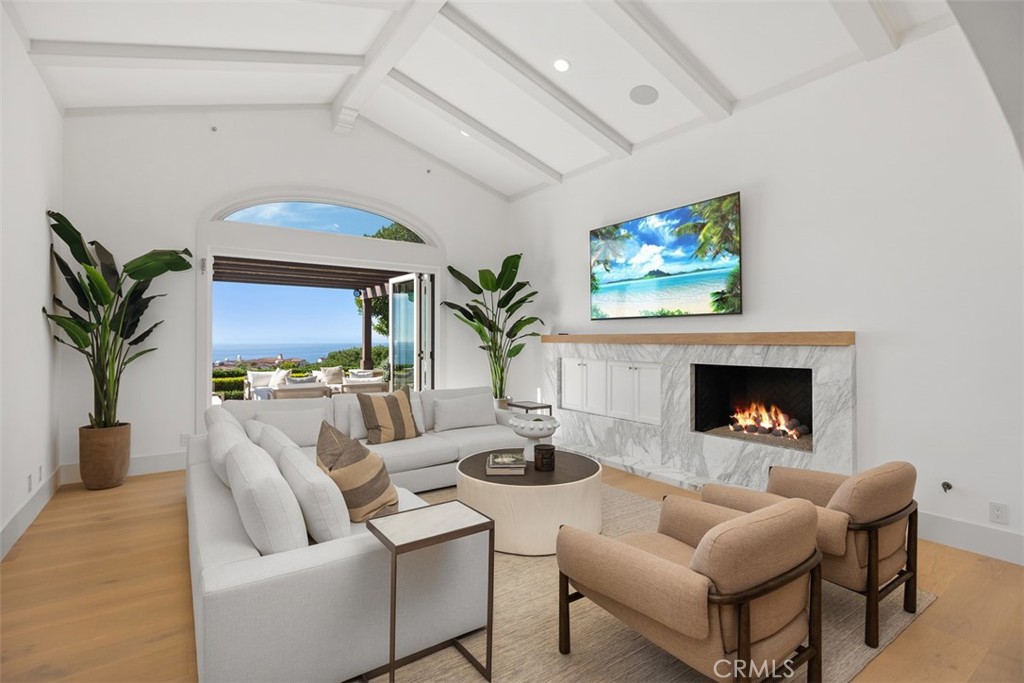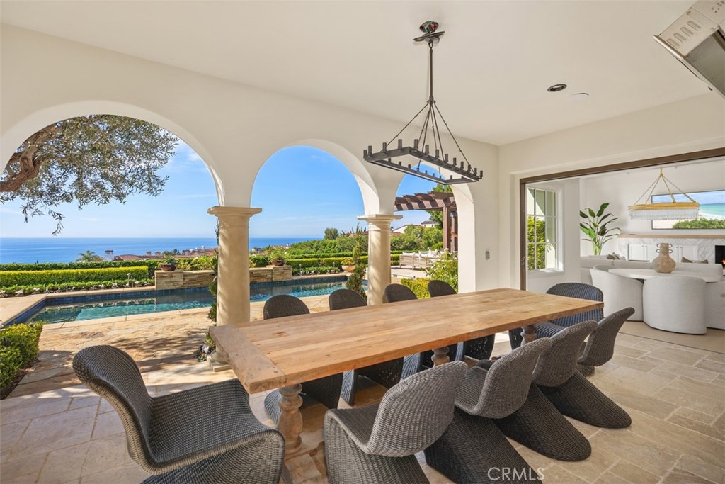 Exquisitely move-in ready, this exceptional 5,045 sq. ft. residence is set on a private 13,871 sq. ft. lot on one of Crystal Cove's most coveted ocean-view cul-de-sacs. Recently reimagined with luxurious, contemporary finishes, the home features elegant white oak flooring, exquisite stone countertops, and custom lighting that together create a harmonious, sophisticated design. The expansive, thoughtfully crafted floor plan includes up to five generously sized bedrooms, a chef-inspired gourmet kitchen, a media room, and versatile spaces for both intimate gatherings and formal entertaining. Step outside into the serene, resort-style backyard, where lush gardens, a raised viewing platform, and a stylish covered cabana with a cozy fireplace set the stage for the ultimate outdoor living experience. The state-of-the-art outdoor kitchen, equipped with a top-tier grilling area, complements the tranquil saltwater pool, creating a true private oasis. Panoramic ocean vistas stretch out before you, with unobstructed views of Catalina Island and breathtaking sunsets, offering a rare combination of privacy, tranquility, and natural beauty. For added convenience, the home includes a three-car garage and an oversized driveway with space for up to seven vehicles, ensuring ample parking while maintaining an exclusive feel. This property is the epitome of coastal luxury, combining both privacy and convenience for a lifestyle like no other. Beyond the residence, residents enjoy a host of exceptional amenities provided by the HOA, including playgrounds, parks, and 24-hour guard-gated and patrolled security. The exclusive Canyon Club offers unparalleled privileges, including tennis, pickleball, basketball, swimming, fitness, and banquet facilities. With world-class shopping, dining, and the renowned beaches of Crystal Cove just moments away, this remarkable home offers the perfect blend of coastal living and modern convenience. 14 Gondoliers Bluff represents a rare opportunity to fully embrace the quintessential Newport Beach lifestyle.