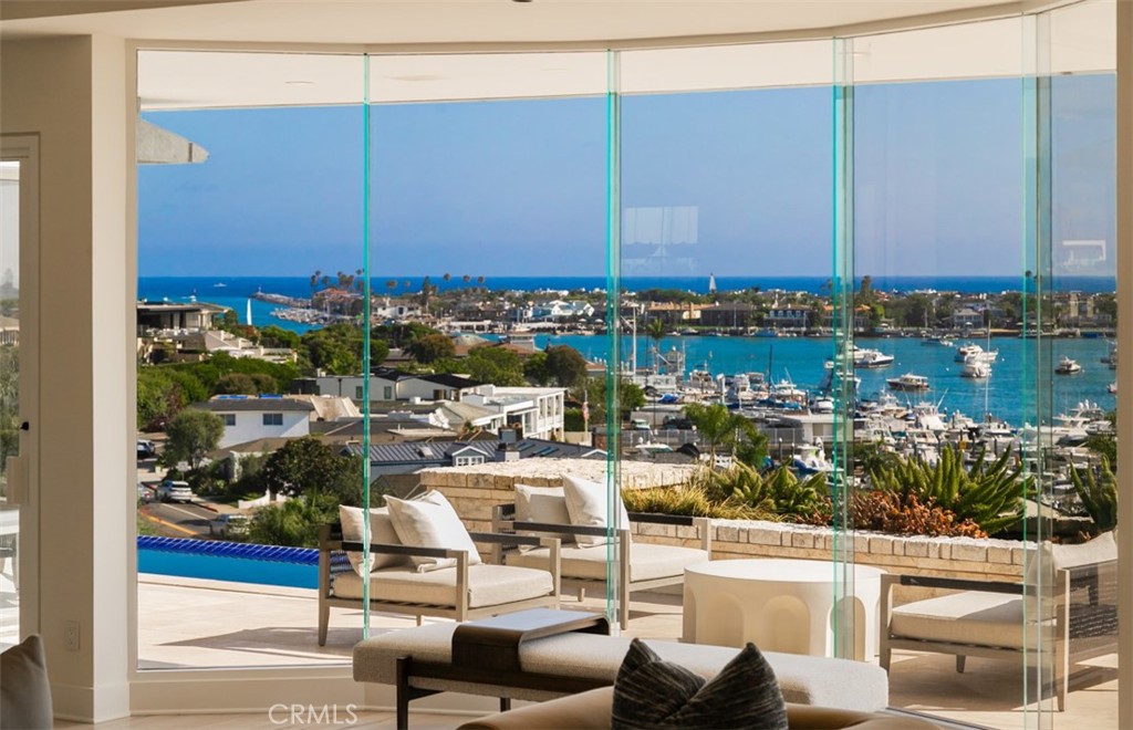 Perched on the front row of Corona del Mar's coveted Irvine Terrace, 1535 Dolphin Terrace commands some of the most captivating views in all of Orange County. With an unmatched vantage point overlooking the mouth of the Newport Jetty, Harbor, Balboa Island, Catalina Island, and the sparkling Pacific and beyond, this property offers a front-row seat to the region's most iconic sights--including nightly city lights, Fourth of July fireworks, and the world-famous Christmas Boat Parade. Ideally positioned across from the Newport Beach Country Club and moments from Fashion Island, Balboa Island, and the CDM Village, this single-level home offers both comfort and convenience in one of the coast's most desirable neighborhoods. Inside, walls of glass frame the panoramic vistas from the great room, kitchen, and primary suite. The open-concept layout is perfect for entertaining, with a glass-enclosed dining area and expansive terrace for al fresco gatherings year-round. The resort-style backyard features an infinity-edge pool and elevated viewing terrace, ideal for watching boats glide through the channel by day and enjoying glowing sunsets and city lights by night. The primary suite includes a cozy fireplace and a spa-like bathroom with ocean-facing soaking tub, double vanities, and a walk-in shower. Whether you're looking to move right in, renovate, or build your dream home, this is a rare opportunity to own one of CDM's most iconic view properties in an unbeatable location.