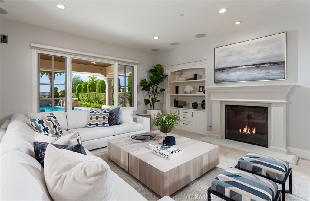 Recently renovated and embodying a chic and elegant Coastal styling, 21 Coral Cay sits on a rare 16,000~ sqft corner lot with an oversized resort style backyard, tranquil coastline and hilltop views, and an exceptional floor-plan with all the latest transitional finishes. The 4,750~ sqft. 5 bed, 5.5 bath residence offers an open concept with 2 oversized en-suite Casita's with attached living rooms as well as a 2nd floor bonus room and versatile floor-plan with options for an office and gym. Intelligently re-designed with entertainment in mind and perfect for everyday living, the oversized yard spaces boast a BBQ island/bar, outdoor loggia, outdoor fireplace, lush grassy area, and an oversized pool/spa with multiple water features & cozy fireplace place with seating. The chef's kitchen showcases beautiful white stone counter tops & backsplash with pro-grade series appliances, sub-zero wine fridge, an oversized pantry and tasteful shaker style cabinets. A combination of stone and wood floors can be found throughout the property as well renovated bathrooms with stone surfaces that create a sense of designer elements and inviting living spaces. The primary suite has been fully upgraded with an oversized balcony which is ideal for viewing breathtaking sunsets and ocean views as well as nighttime stargazing. Residents of the property enjoy access to highly sought after Newport Mesa School District, all of the community's amenities such as The Canyon Club, gated beach access, and 24-hr guard-gated and patrolled security. Direct access to Crystal Cove shopping center as well as being mins away from Laguna Beach, world class dining & shopping, and 73 & various freeways make this a perfect location for todays most discerning resident.