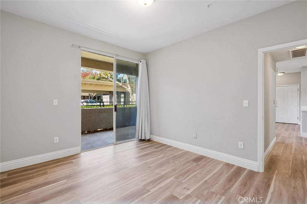 Uniquely positioned in the heart of Aliso Viejo, this beautifully appointed residence within the Canyon Point community offers refined living with thoughtfully updated finishes throughout. The open-concept layout is enhanced by a light-filled living and dining area, complemented by clean architectural lines and a seamless flow to a private outdoor patio, ideal for relaxing or entertaining. The kitchen features white cabinetry, quartz countertops, stainless steel appliances, and a dedicated pantry, blending functionality with timeless design. The spacious primary bedroom includes a walk-in closet and direct access to the patio, while the well-appointed bathroom offers a vanity with ample storage and a tub-shower combination. Additional highlights include in-unit laundry, a nearby covered parking space, and tasteful finishes that create a warm, cohesive feel throughout the home.Residents of Canyon Point enjoy access to resort-style amenities including a pool, spa, fitness center, and clubhouse. Ideally located near parks, hiking trails, shopping, dining, and major commuter routes, this home delivers comfort, convenience, and an elevated Southern California lifestyle.