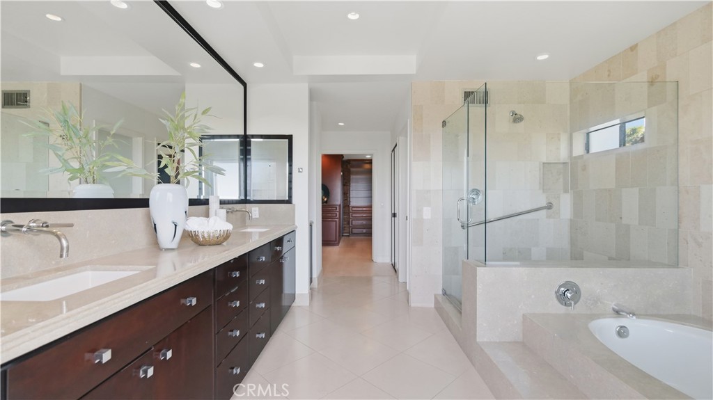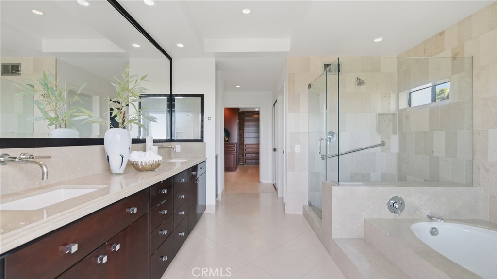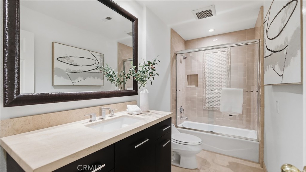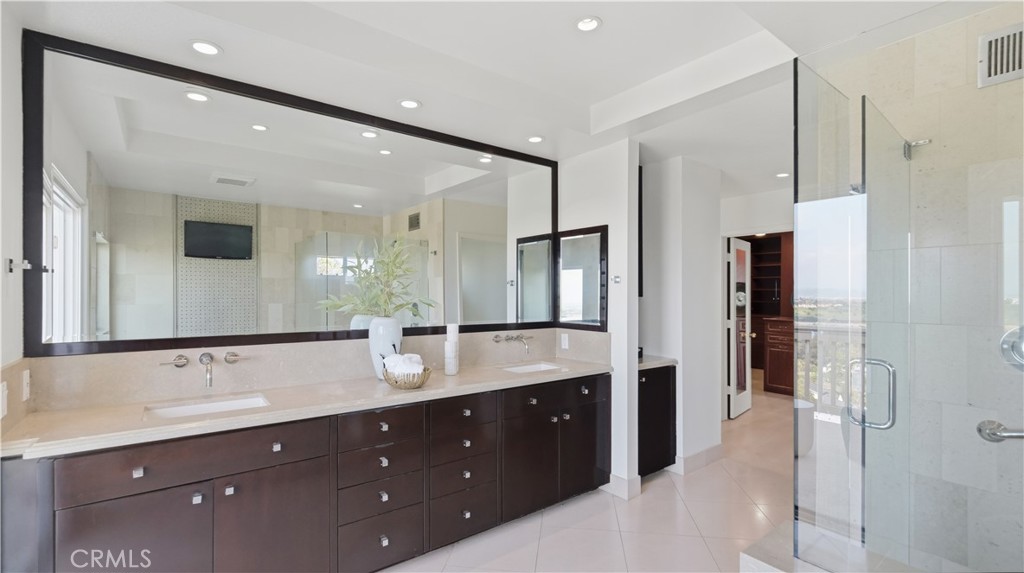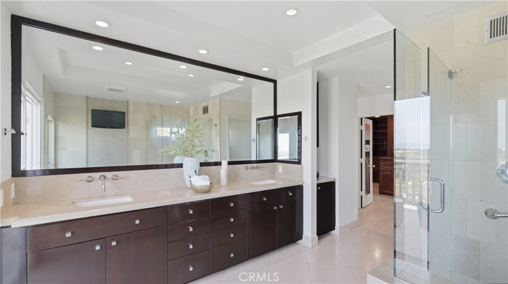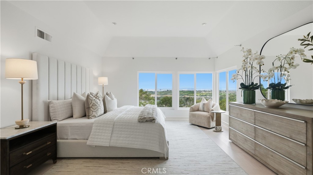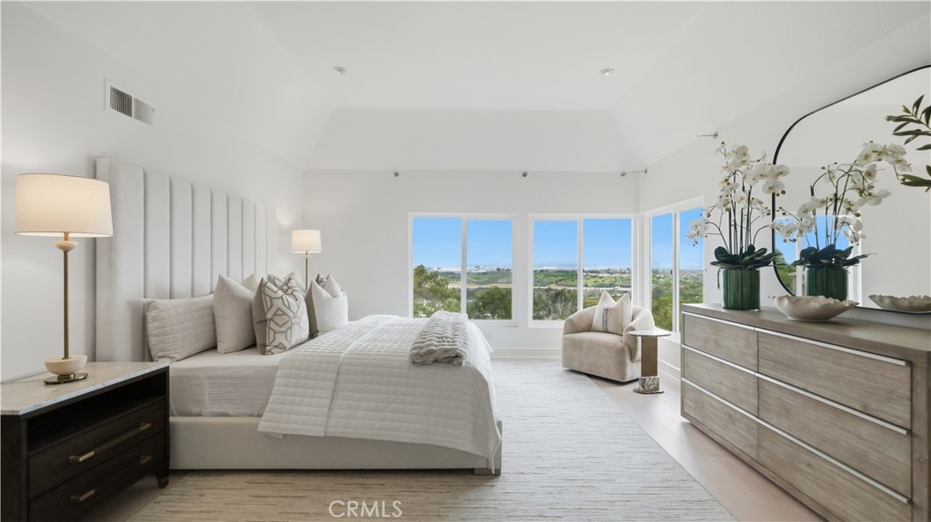 Located within the gated enclave of Harbor Ridge, this 3 bedroom + office, 3 bath residence enjoys elevated city and ocean views, and a thoughtfully designed floor plan that balances privacy and functionality throughout the home. A gated entry leads to a landscaped courtyard, creating a quiet and welcoming arrival. Inside, the interiors are light filled and refreshed, featuring skylights, recessed lighting, and clean, neutral finishes. The main living areas are highlighted by high ceilings and seamless access to multiple outdoor patios, enhancing everyday living and entertaining. The kitchen is designed for both everyday living and entertaining, featuring a center island, black onyx granite countertops, high end appliances, generous storage, and a casual dining area overlooking the garden. A full bathroom is conveniently located on the main level, providing ease of access for guests and daily use. The upstairs office offers built in workspace and a quiet setting, making it well suited for working from home. The primary suite features two walk in closets, including a spacious cedar lined dressing closet, and a well appointed bathroom with dual vanities, a soaking tub, and a separate shower. The suite also opens to a private balcony, offering open views and a peaceful extension of the living space. Residents of Harbor Ridge Estates enjoy access to community pools, spas, tennis courts, and walking trails, all conveniently located near Fashion Island, Pelican Hill, Newport Beach's coastline, and award-winning schools.