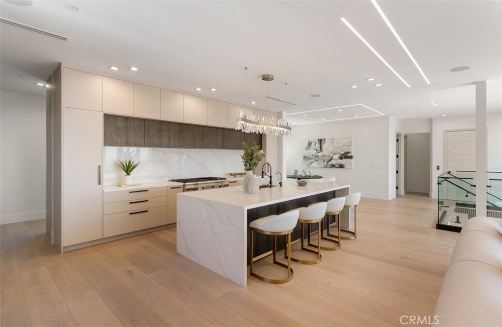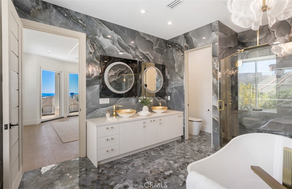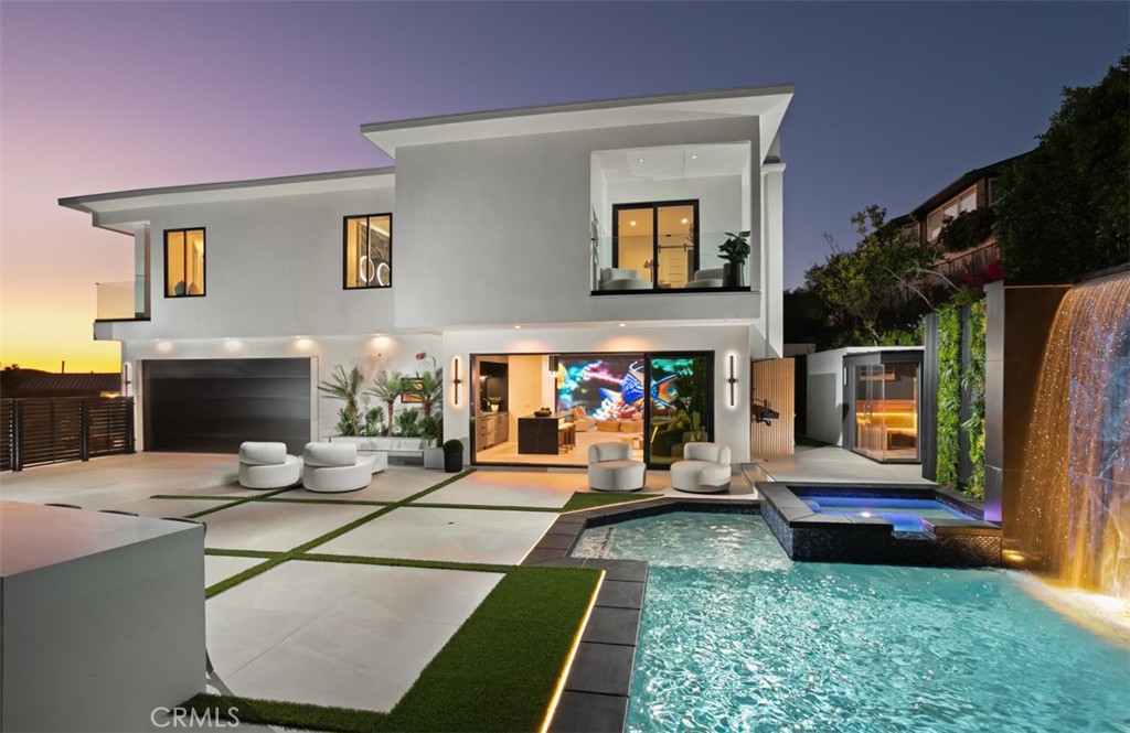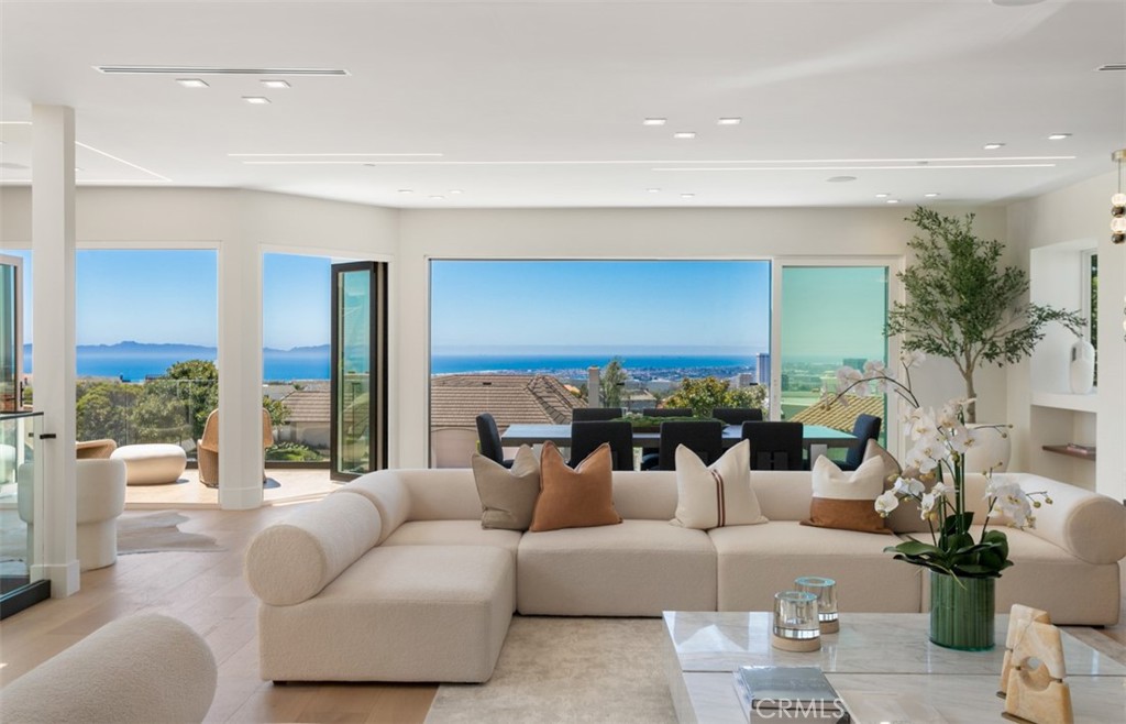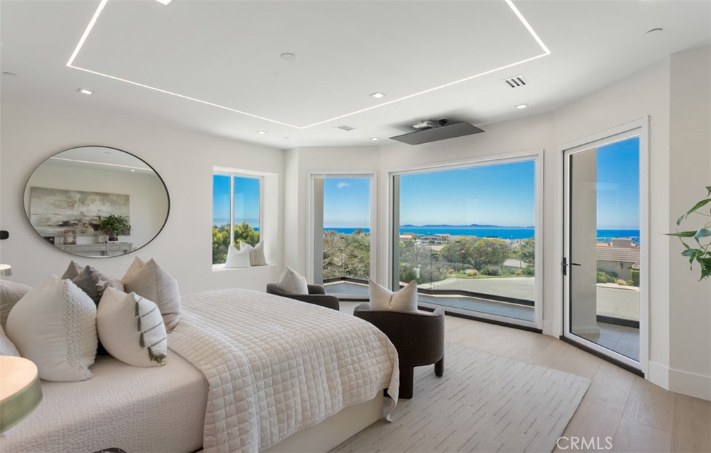 Perched at the end of a quiet cul-de-sac within the exclusive guard-gated enclave of Harbor Ridge, 4 Narbonne is a stunning showcase of design, function, and luxury. Completely reimagined, this architectural gem blends striking modern aesthetics with a warm, inviting ambiance--perfectly tailored for entertaining and everyday living. Beyond a private entry gate and custom oversized front door, you're welcomed into a dramatic open-concept layout filled with natural light, curated finishes, and an effortless indoor-outdoor flow. The main level offers three spacious bedrooms, including a junior primary suite with ocean views, and two secondary bedrooms that overlook a serene water feature. A sleek lounge with a fireplace, bar, and media wall adds to the home's entertainer appeal. Take the elevator upstairs, where panoramic views span the Pacific Ocean, Catalina Island, Newport Harbor, and city lights that stretch to downtown LA. Designed for both grandeur and comfort, this level features two additional bedrooms--one currently used as a home office with its own balcony--as well as a show-stopping primary suite wrapped in floor-to-ceiling glass. The spa-like bathroom and boutique-style closet complete the experience. The heart of the home includes both a front-facing designer kitchen and a full secondary prep kitchen, flanked by a breakfast nook, formal dining area, double fireplaces, and walls of sliding and bi-folding doors that dissolve the line between indoors and out. Step into your own private resort: a spectacular outdoor oasis with a pool, spa, dry sauna, multiple waterfalls, a BBQ island, fire table, and ample lounge and dining areas--designed to impress and built to entertain. With every box checked--guard-gated security, panoramic views, stunning finishes, and true turnkey luxury--this is coastal living at its finest.