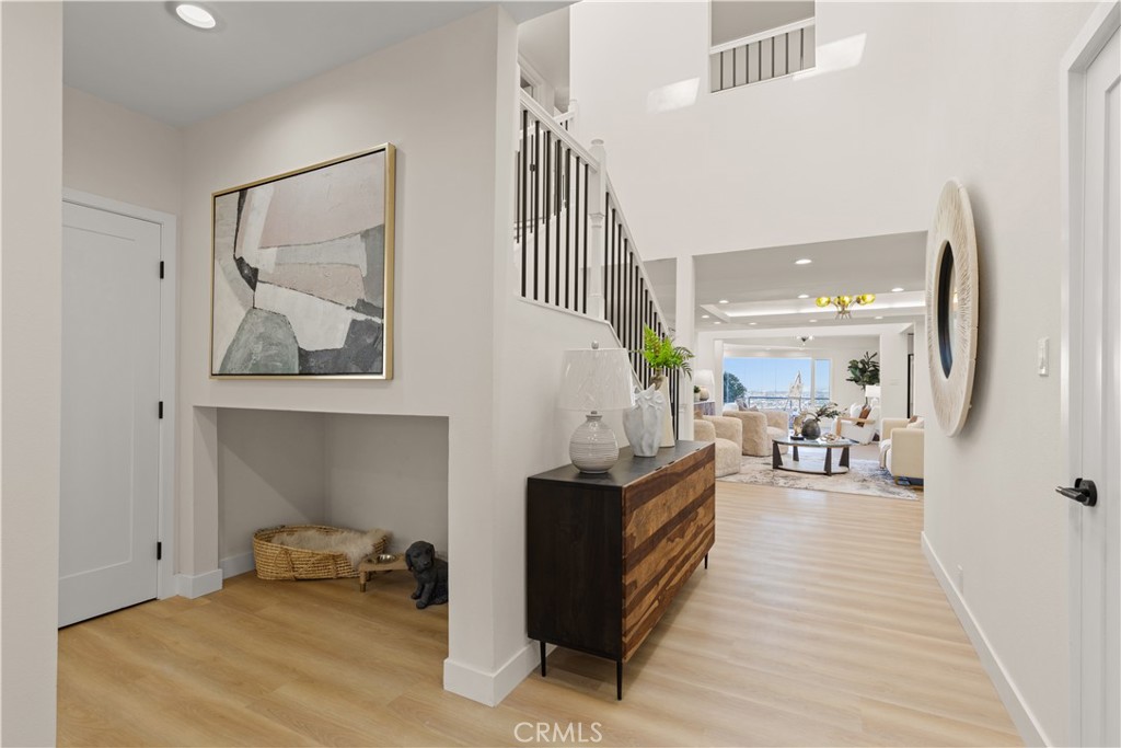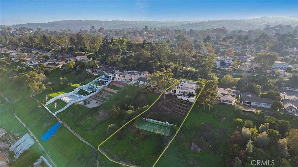 Perched atop Torrance Hill in the coveted Hollywood Riviera, 4317 Paseo De Las Tortugas is a rare architectural residence offering approximately 4,369 sqft of living space on an expansive ~24,500 sqft terraced lot with sweeping, unobstructed city, ocean, and mountain views. Walls of glass, soaring ceilings, and a dramatic curved feature wall anchor the sunken living room, framing panoramas that stretch from the LA Harbor and Downtown skyline to sunsets over the Pacific and the distant snow-capped Angeles range. The flexible floor plan includes four generous bedrooms and four baths, with a main-level bedroom suite featuring its own bath and large walk-in closet--ideal for guests or multigenerational living--plus an upper-level primary retreat with private view balcony and two additional bedrooms that can double as office or studio spaces. The kitchen and entertaining areas are enhanced by granite counters, bar seating, pantry, and recessed lighting, seamlessly connecting to multiple indoor and outdoor gathering zones. Outside, the deep hillside lot unfolds into a series of usable terraces with vegetable beds, lounging areas, and a private sports court, creating a rare combination of view, land, and lifestyle. Located just minutes from the beach, Riviera Village, and award-winning local schools, this Hollywood Riviera view home is an exceptional opportunity to enjoy iconic South Bay vistas and a true California indoor-outdoor lifestyle.