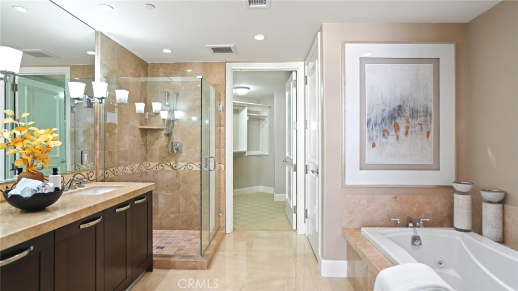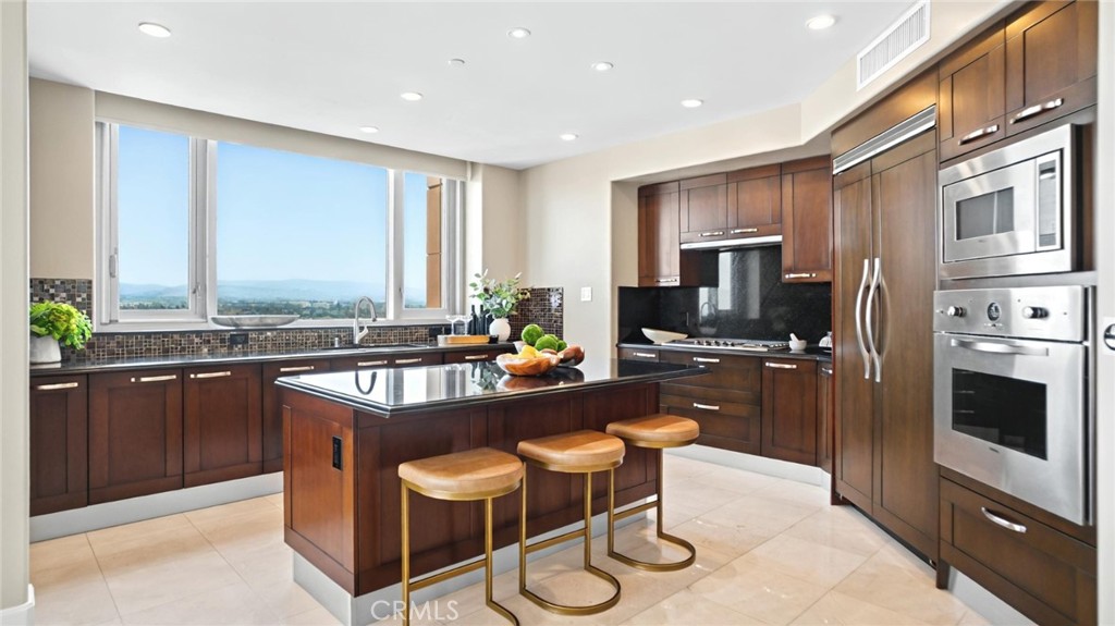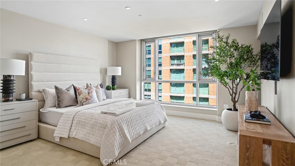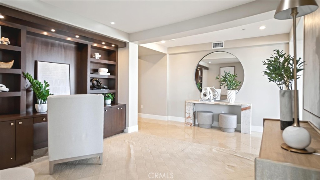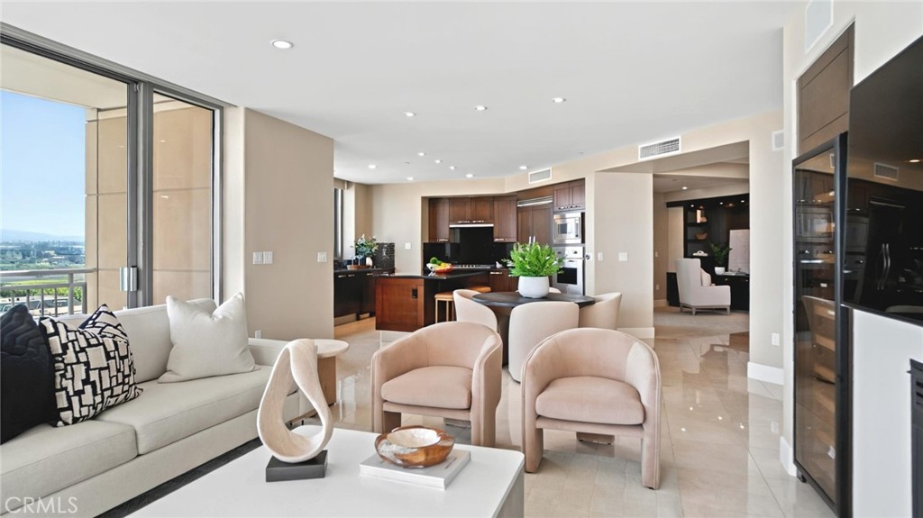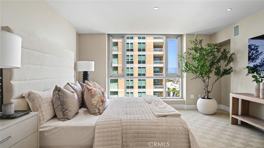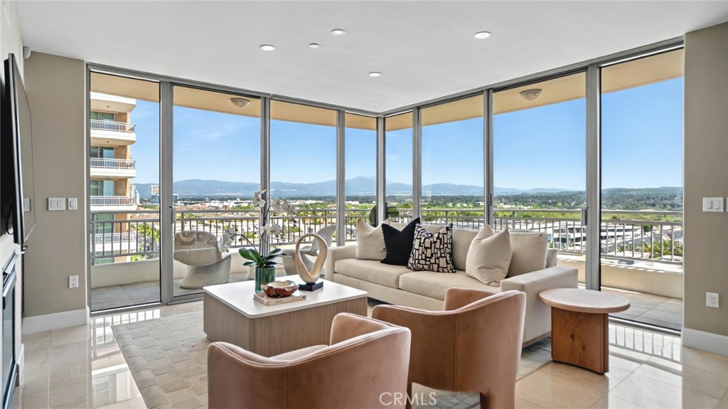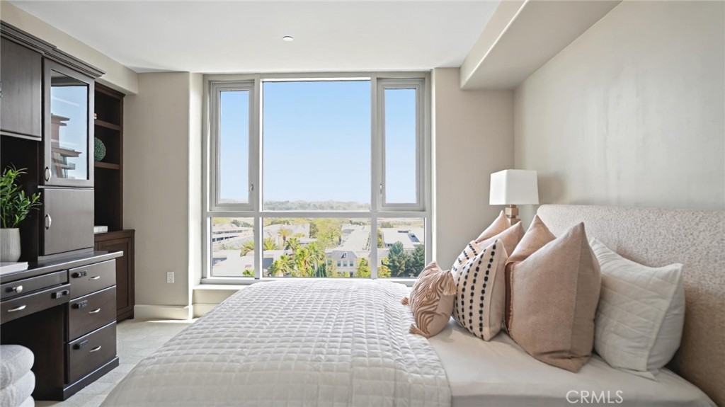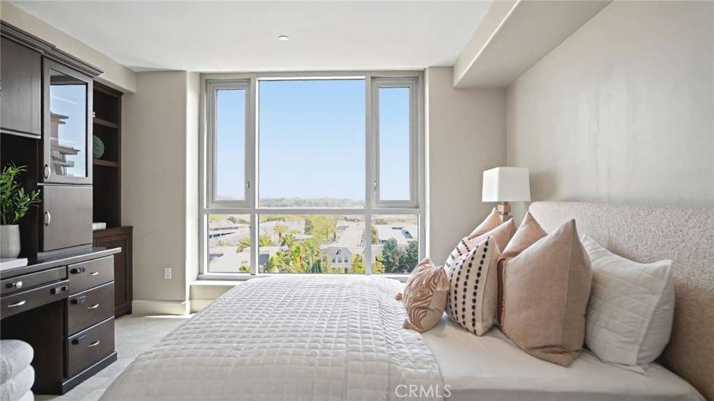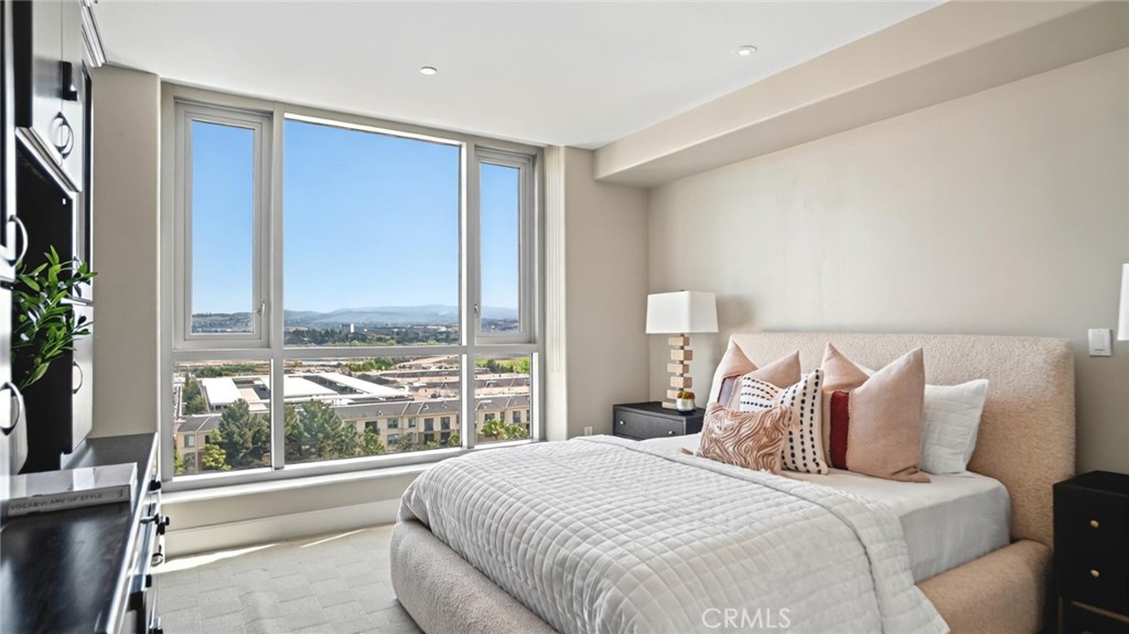 Elevated above the heart of Irvine's prestigious Plaza community, this meticulously maintained corner residence offers the perfect fusion of luxury, privacy, and panoramic views. Spanning over 2,050 square feet, this highly sought-after floor plan features 2 bedrooms, a versatile den, and a unique corner location that sets it apart from the rest--positioned away from main road traffic while offering interior-facing views that enhance both tranquility and exclusivity. Thoughtfully designed for effortless living and entertaining, the open-concept layout seamlessly connects the formal living and dining areas to a modern kitchen outfitted with premium appliances and contemporary finishes. Expansive floor-to-ceiling windows flood the space with natural light, framing captivating cityscape vistas and lush courtyard scenes from nearly every angle. Retreat to the spacious primary suite, complete with a spa-inspired bathroom and generous walk-in closet, while the secondary bedroom and den provide ample flexibility for guests or a home office setup. Sophisticated yet comfortable, this residence also benefits from the renowned amenities at The Plaza--concierge services, state-of-the-art fitness center, pool and spa, all within close proximity to Irvine's finest shopping, dining, and entertainment.