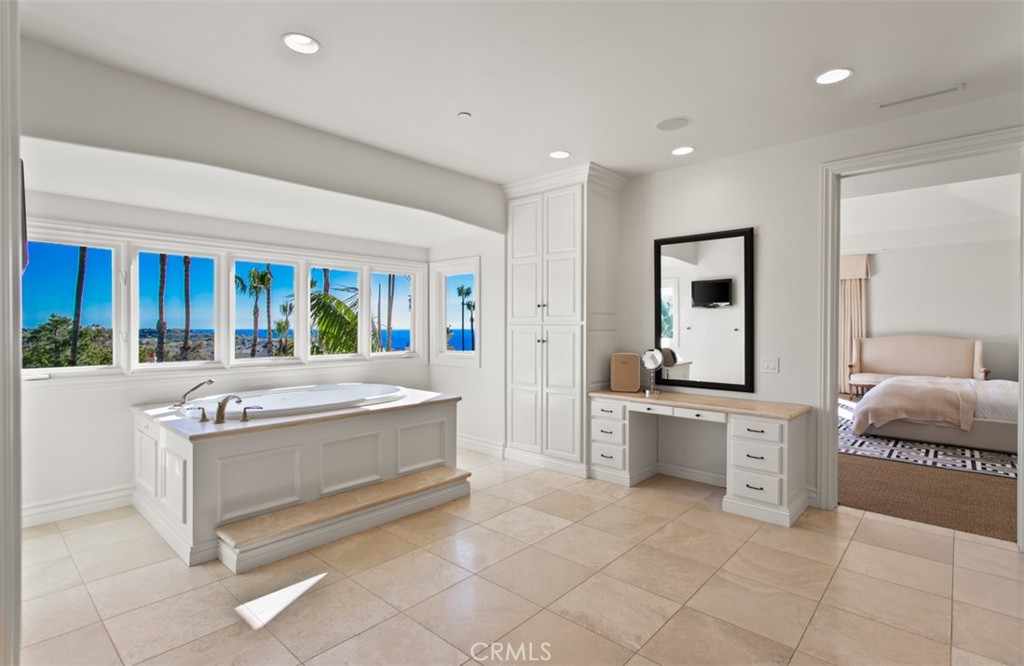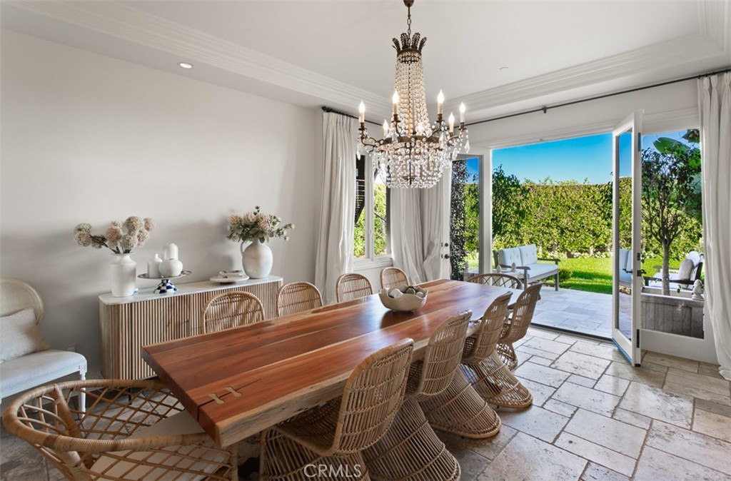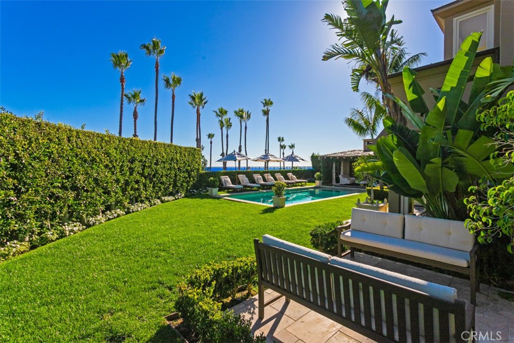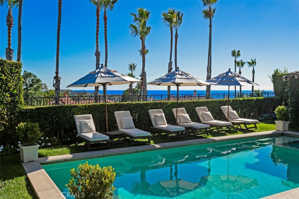 Inspired by the unhurried elegance of the French Riviera, 6 Windemere rises above the Pacific with a calm confidence and elevated coastal style. Set behind private iron gates on an oversized 15,600 SF corner parcel, the residence enjoys sweeping views of the ocean, Catalina Island, and sunset horizons. Inside, 5,364 SF of living space balances sophistication and ease. Vaulted ceilings, clerestory windows, and stone flooring draw in natural light throughout the day, while the great room and chef's kitchen open seamlessly to a broad covered terrace and shaded pergola - a setting that recalls long lunches and late evenings along the Cote d'Azur. The backyard is the estate's signature: a rare, expansive, level lawn framed by mature palms and citrus, a heated pool and spa, built-in BBQ, and a poolside pavillon with fireplace and television. It's a private outdoor world designed for both quiet moments and glamorous gatherings under the California sky. Additional features include a 3-car garage with EV charging, infrared sauna, main-level guest suite, and zoned climate control. Minutes to Crystal Cove, Pelican Hill Resort, Fashion Island, and top-rated schools. Riviera elegance, tailored for Southern California living.