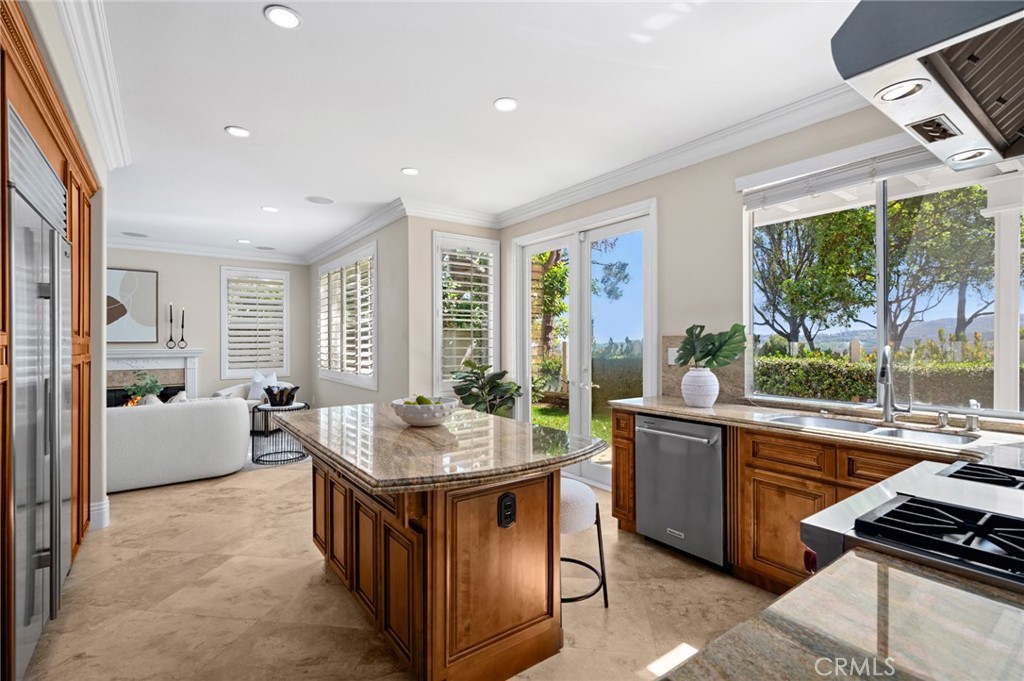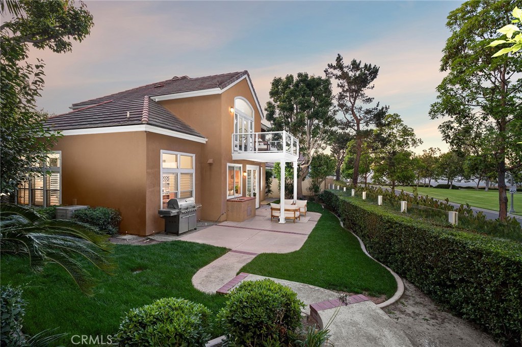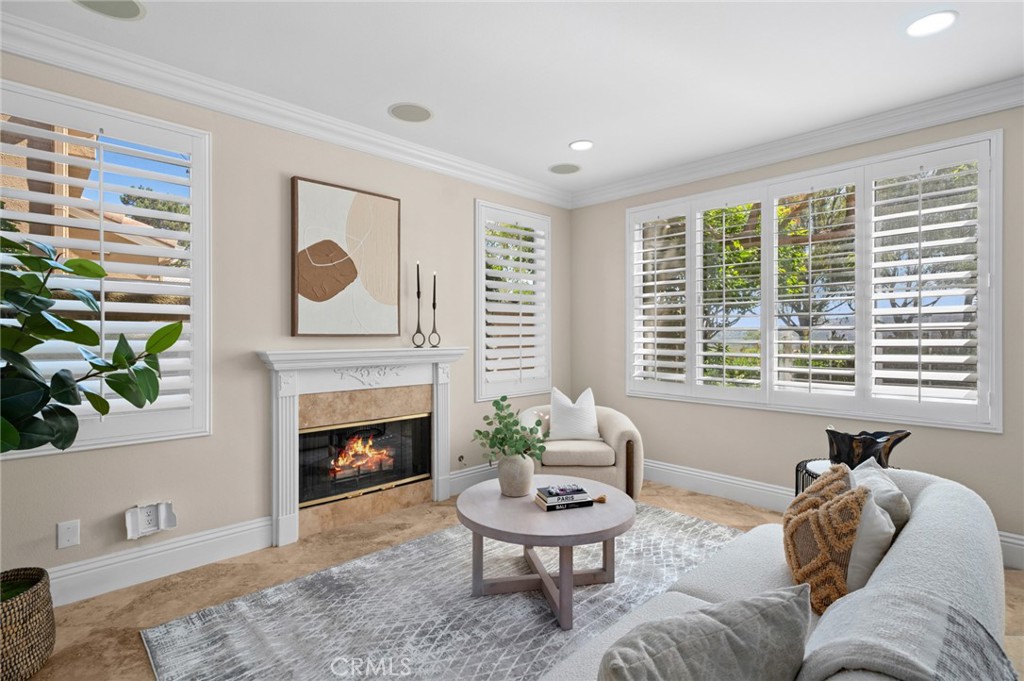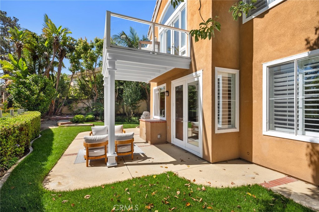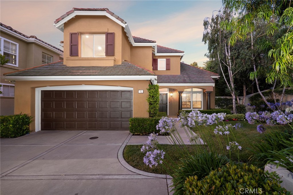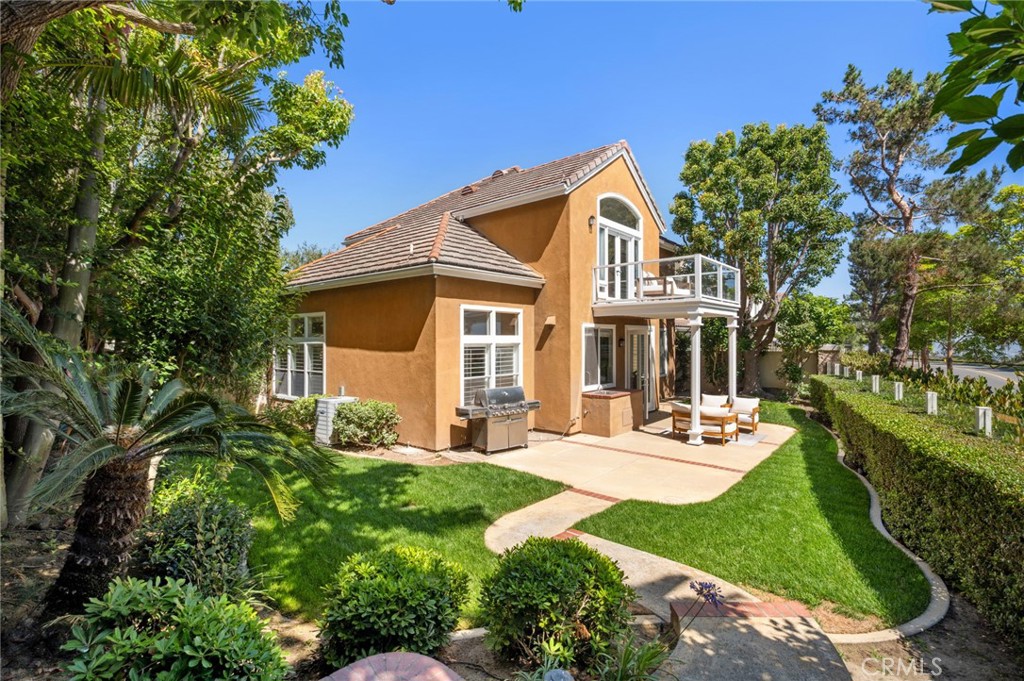 Tucked away on a private cul-de-sac in the gated community of St. Michel, this single-family home offers sweeping mountain and city light views with no rear neighbors, creating a rare sense of privacy and serenity. Set on one of the largest lots in the neighborhood, the property features a long driveway and an expansive side yard with potential to further customize or expand. This 3-bedroom, 2.5-bath residence blends elegance and comfort with thoughtful designer details throughout, including 24-inch travertine floors, crown molding, 6-inch baseboards, high ceilings, marble-finished bathrooms, and plantation shutters. The dramatic entry and soaring ceilings in the living room enhance the open, airy feel. The chef's kitchen is a true centerpiece, outfitted with premium appliances including a Wolf range and hood, Sub-Zero refrigerator and wine fridge, Swedish Asko dishwasher, granite-topped island with seating for six, and rich maple cabinetry with custom pullouts and a built-in spice rack--ideal for entertaining. French doors open to a tranquil outdoor setting with breathtaking views, perfect for enjoying coastal evenings. Residents enjoy access to nearby community pools, parks, Newport Coast Community Center, Crystal Cove beaches, Fashion Island, world-class golf at Pelican Hill & Resort, and award-winning schools.