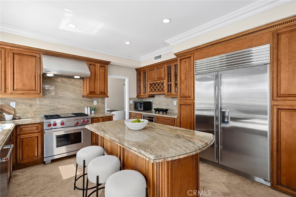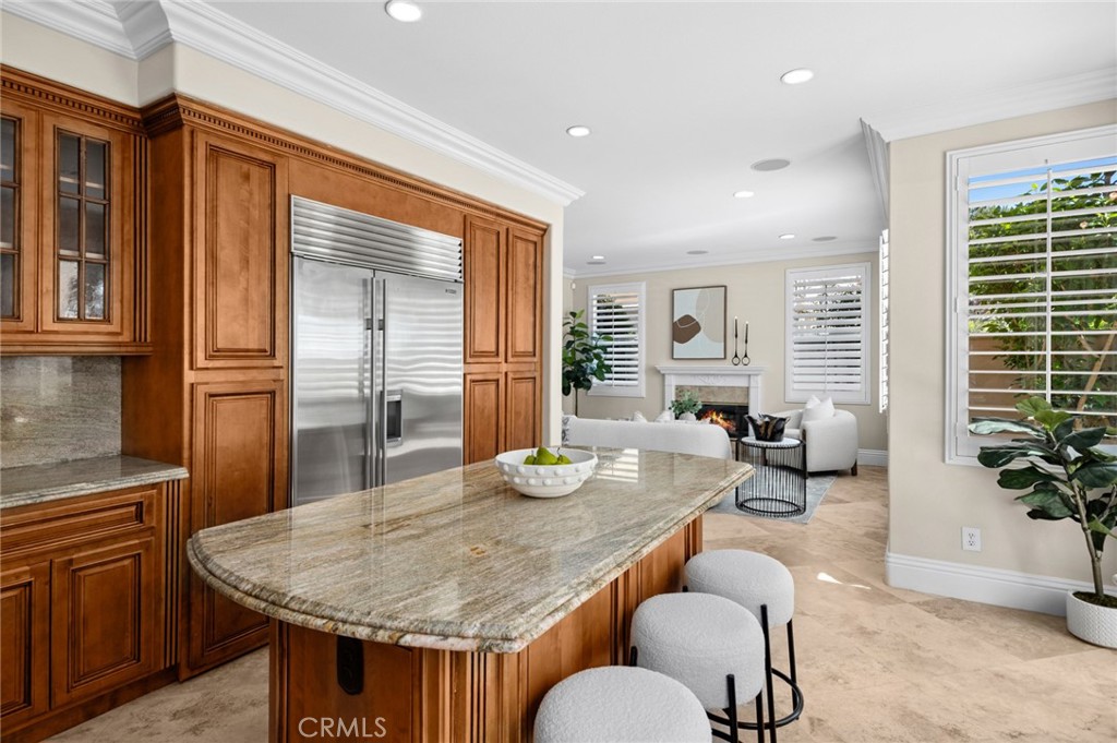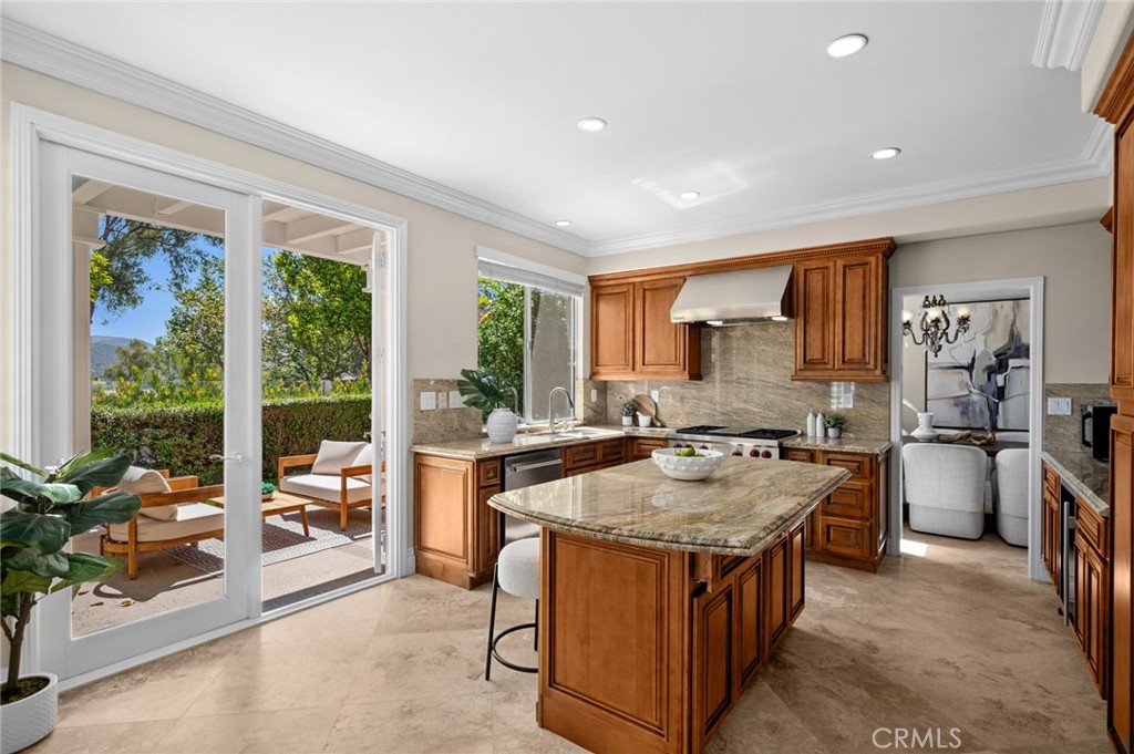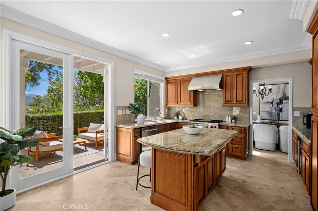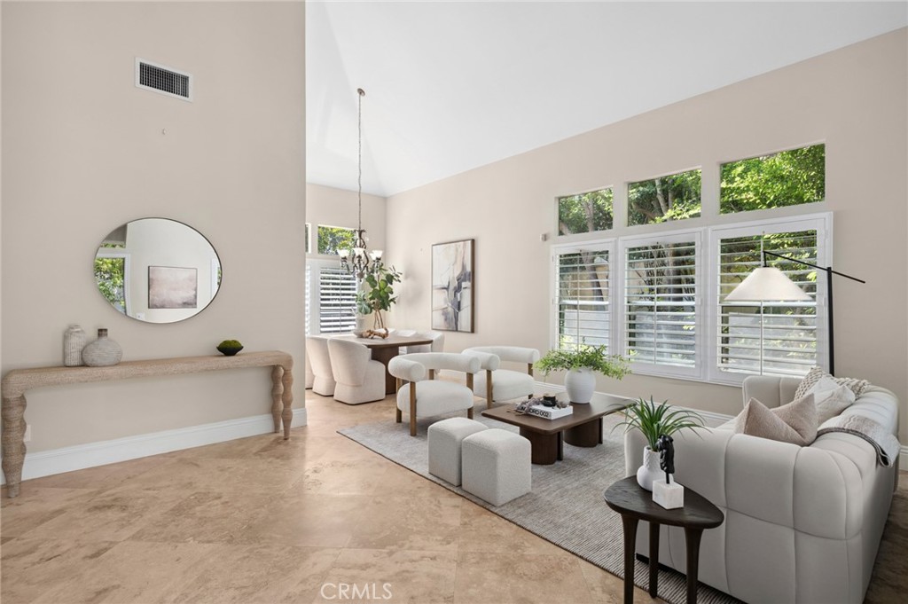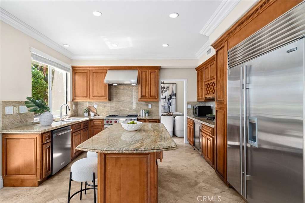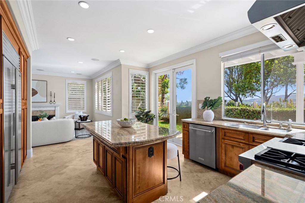 Tucked away on a private cul-de-sac in the gated community of St. Michel, this single-family home offers sweeping mountain and city light views with no rear neighbors, creating a rare sense of privacy and serenity. Set on one of the largest lots in the neighborhood, the property features a long driveway and an expansive side yard with potential to further customize or expand. This 3-bedroom, 2.5-bath residence blends elegance and comfort with thoughtful designer details throughout, including 24-inch travertine floors, crown molding, 6-inch baseboards, high ceilings, marble-finished bathrooms, and plantation shutters. The dramatic entry and soaring ceilings in the living room enhance the open, airy feel. The chef's kitchen is a true centerpiece, outfitted with premium appliances including a Wolf range and hood, Sub-Zero refrigerator and wine fridge, Swedish Asko dishwasher, granite-topped island with seating for six, and rich maple cabinetry with custom pullouts and a built-in spice rack--ideal for entertaining. French doors open to a tranquil outdoor setting with breathtaking views, perfect for enjoying coastal evenings. Residents enjoy access to nearby community pools, parks, Newport Coast Community Center, Crystal Cove beaches, Fashion Island, world-class golf at Pelican Hill & Resort, and award-winning schools.
