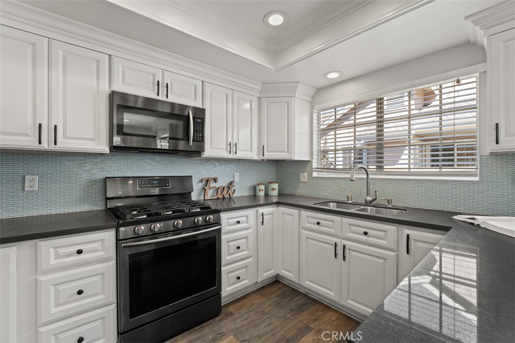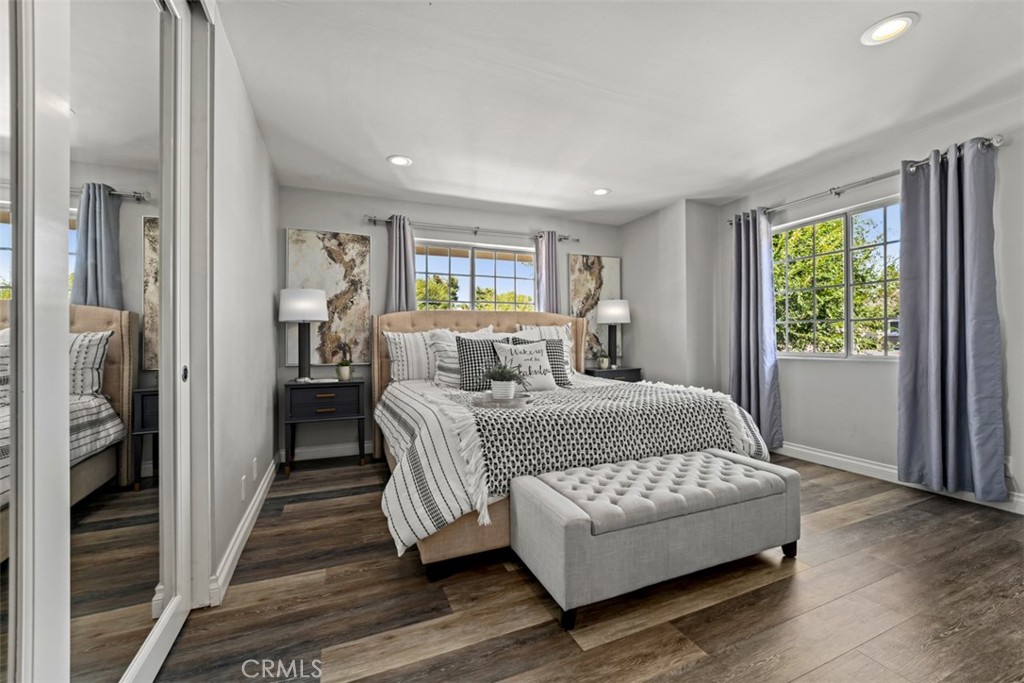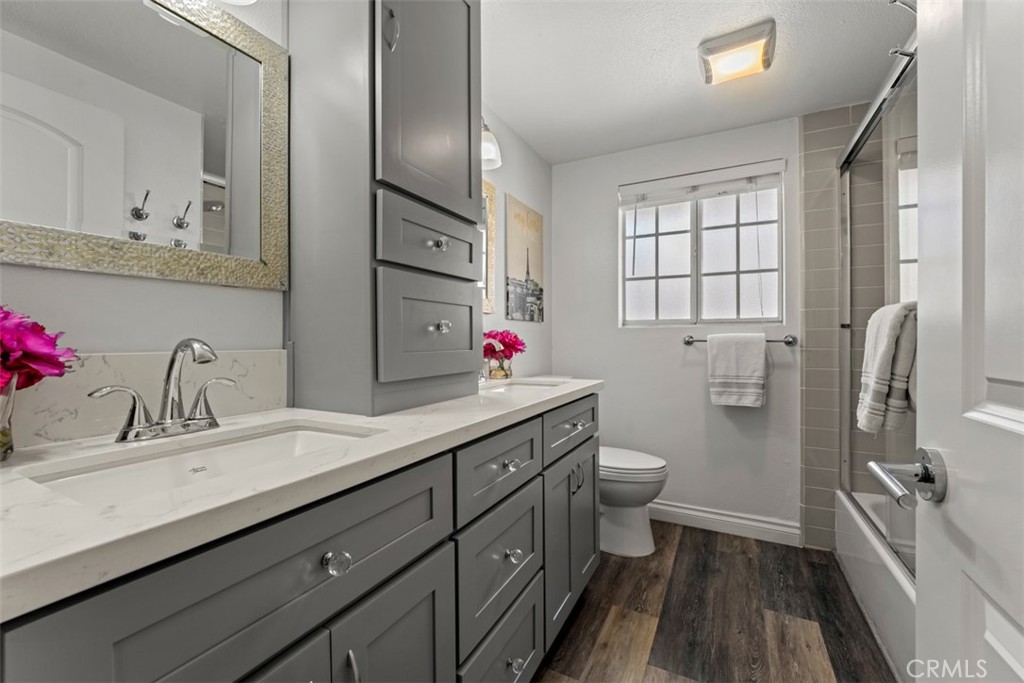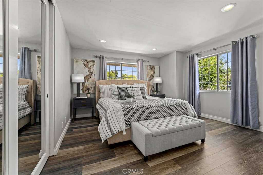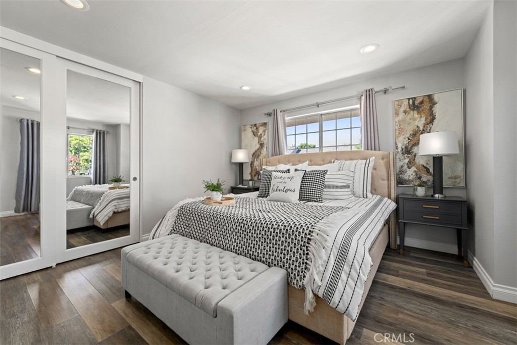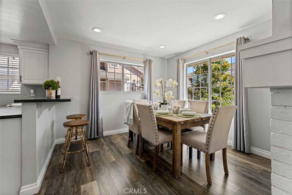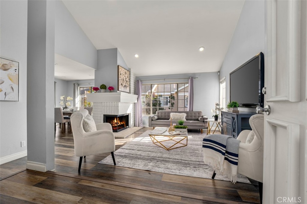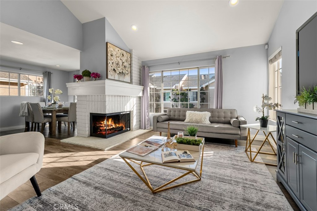 Step inside to discover a bright and inviting interior, featuring a spacious living area with vaulted ceilings, recessed lighting, and updated flooring throughout. The kitchen has been tastefully upgraded with modern cabinetry, quartz countertops, and stainless steel appliances, seamlessly flowing into the dining area for effortless entertaining. The primary suite offers generous closet space and an upgraded en-suite bathroom with dual vanities. Two additional bedrooms provide flexibility for a growing family, home office, or guests.