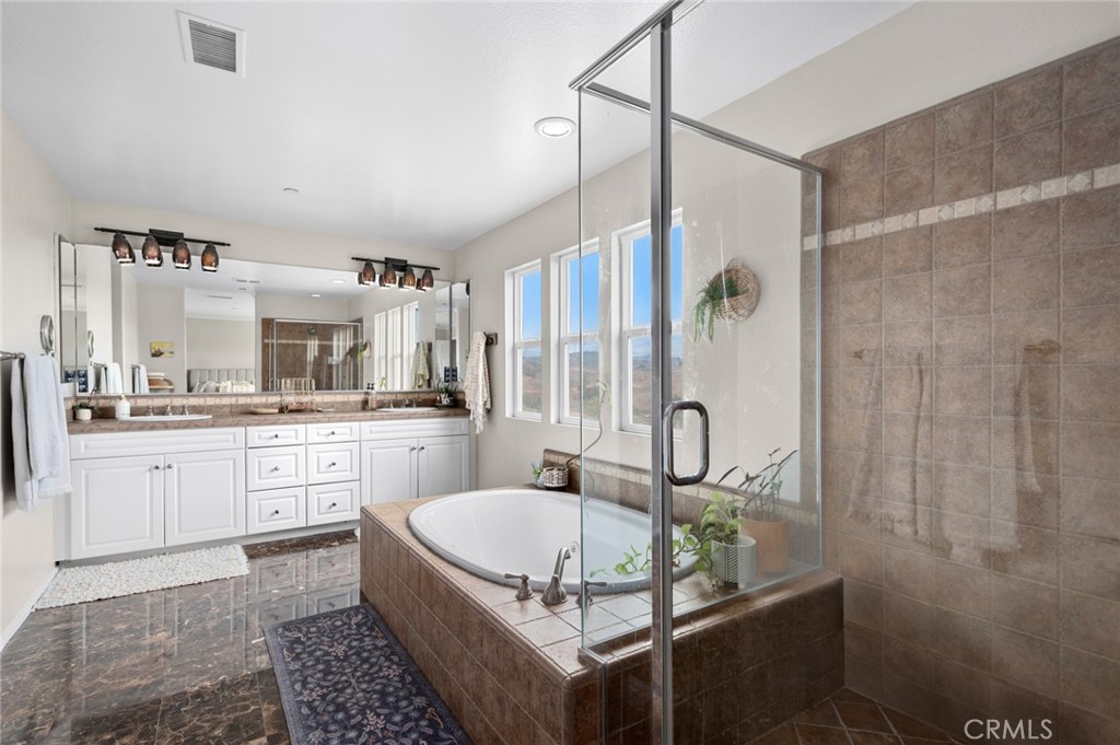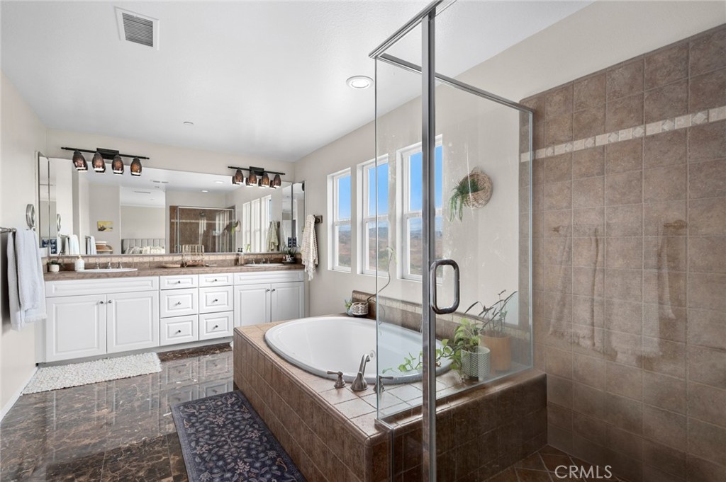 Serrano Heights Casita - Tucked away on a quiet cul-de-sac with views of the rolling hills, this upgraded 3-bedroom + loft home offers the perfect balance of comfort and style. The open layout features luxury vinyl plank flooring, granite kitchen with gas range, and seamless flow to a private patio for alfresco dining. NO COMMON WALLS. Upstairs includes a flexible loft, spacious bedrooms, and a primary suite with views of the rolling hills, dual vanities, soaking tub, walk-in shower, and expansive closet. The backyard provides space to relax or entertain with a barbecue area, dining area, and landscaped planters. Just steps from the community pool, spa, clubhouse, and nearby parks, with top-rated schools and Anaheim Hills Golf Course close by.
