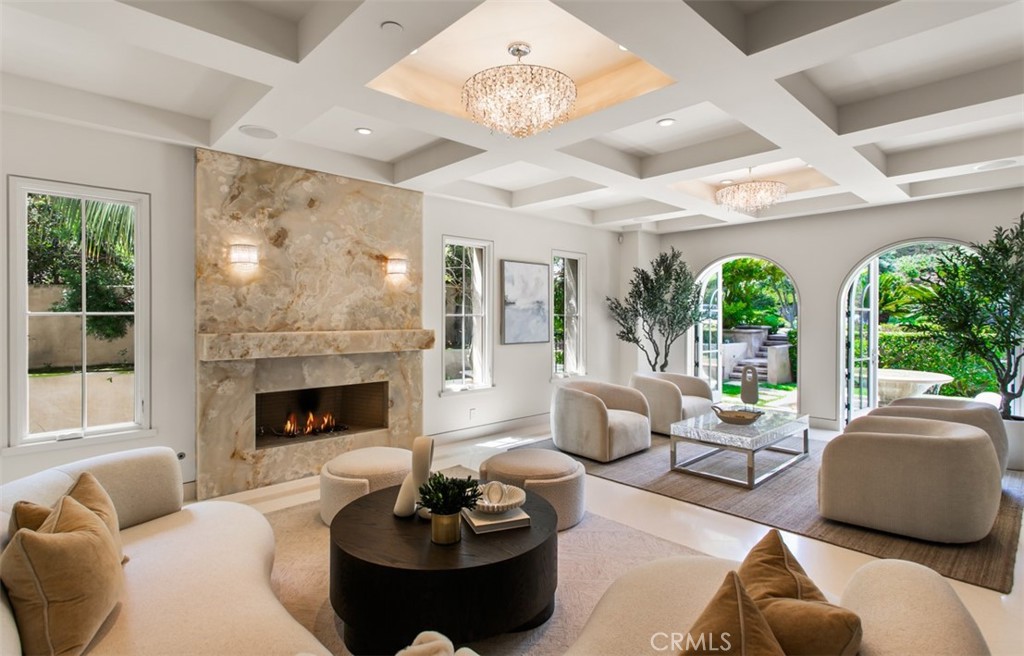 Situated within the prestigious guard-gated community of Pelican Crest, this remarkable custom estate offers approximately 10,310 square feet of refined modern European living, seamlessly blending timeless architecture with contemporary sophistication. Beyond the grand double glass-and-iron entry doors, a dramatic two-story foyer with a sweeping floating staircase and French limestone flooring sets the tone for the home's exceptional transitional design. Light-filled formal and casual spaces flow effortlessly, including a formal dining room with access to the grounds and a gourmet chef's kitchen appointed with Viking and Miele appliances, custom cabinetry, and elegant stone surfaces. The great room, anchored by a striking onyx fireplace and sophisticated wet bar, opens through three sets of French doors to the resort-like backyard, creating a natural extension of indoor and outdoor living.