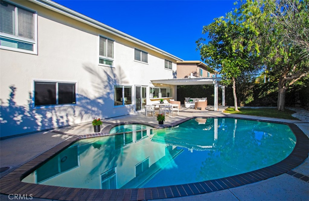 Brand-new wide-plank flooring flows beneath your feet, guiding you through an open-concept great room that opens effortlessly to a private resort-caliber backyard featuring a sparkling solar-heated saltwater pool and serene outdoor living spaces. The chef's kitchen is a masterpiece of form and function, showcasing gleaming new quartz countertops, premium stainless steel appliances, custom cabinetry, and garden windows framing pool views.