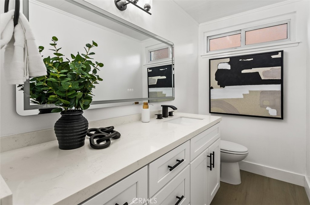 Every detail has been elevated: newer dual-paned windows, smooth scraped ceilings, central A/C, recessed lighting, built-in surround sound, and refined wainscoting throughout. Impeccably turnkey and dripping in luxury--this is South Huntington Beach perfection. Schedule your private showing before it's gone.